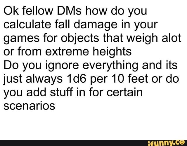 5E Calculate Damage : Fall Damage 5E : How To Calculate ... from lh5.googleusercontent.com One vs one one vs all all vs one random battles There is a very real possibility my cos players are going to pull a 9/11 on castle ravenloft with a magic airship they've recently acquired. 48th 100% select the calculator's mode of function. 5e calculating the damage of a large building or tower falling on characters. Max fall damage in 5e is 120 hit points. Little lost on just how much damage being crushed by a giant tower or large chunk of a castle might cause, i figure. Damage calculation is the calculation used to determine the damage done by a pokémon. For instance, a dagger says 1d4 pierci.